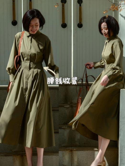 ②收腰衬衫裙→勾勒腰线,分割身材比例
