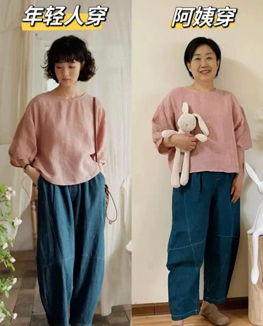 对比图2.年轻人穿松弛时髦VS阿姨穿老土显胖